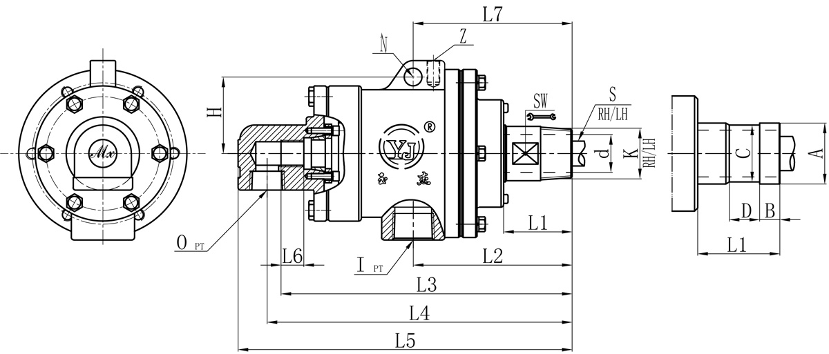 | Model | K | I | O | S | d | L1 | L2 | L3 | L4 | L5 | L6 | L7 | Z | N | SW | H | 法兰式外管尺寸对照表 | |||